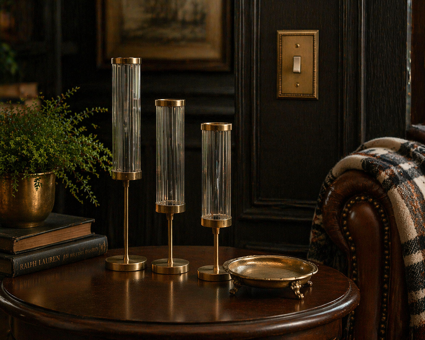Brass accents are one of the details that make a room feel instantly more Ralph Lauren. They bring in that old-word feel. Think trays, candlesticks, and lights that add richness without feeling flashy.