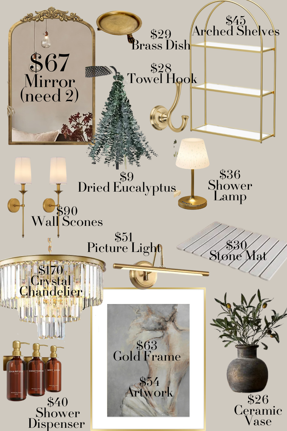 I wanted this bathroom to feel elegant, clean, and expensive. I tried to be intentional about what I wanted to add. I didn’t want to fill the room with random decor. I wanted pieces that would either solve a problem, add warmth, or make the space feel more finished. So off to Amazon I went to create my wish list.