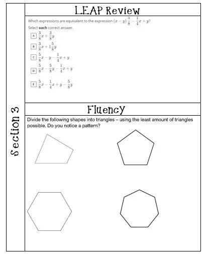 LEAP Review: This is always modeled after the end-of- year assessment. In Louisiana, the end-of-year assessment is broken into two types of questions: Type 1 and Constructed Responses (open ended questions). I typically pull Type 1 questions for my warmups: