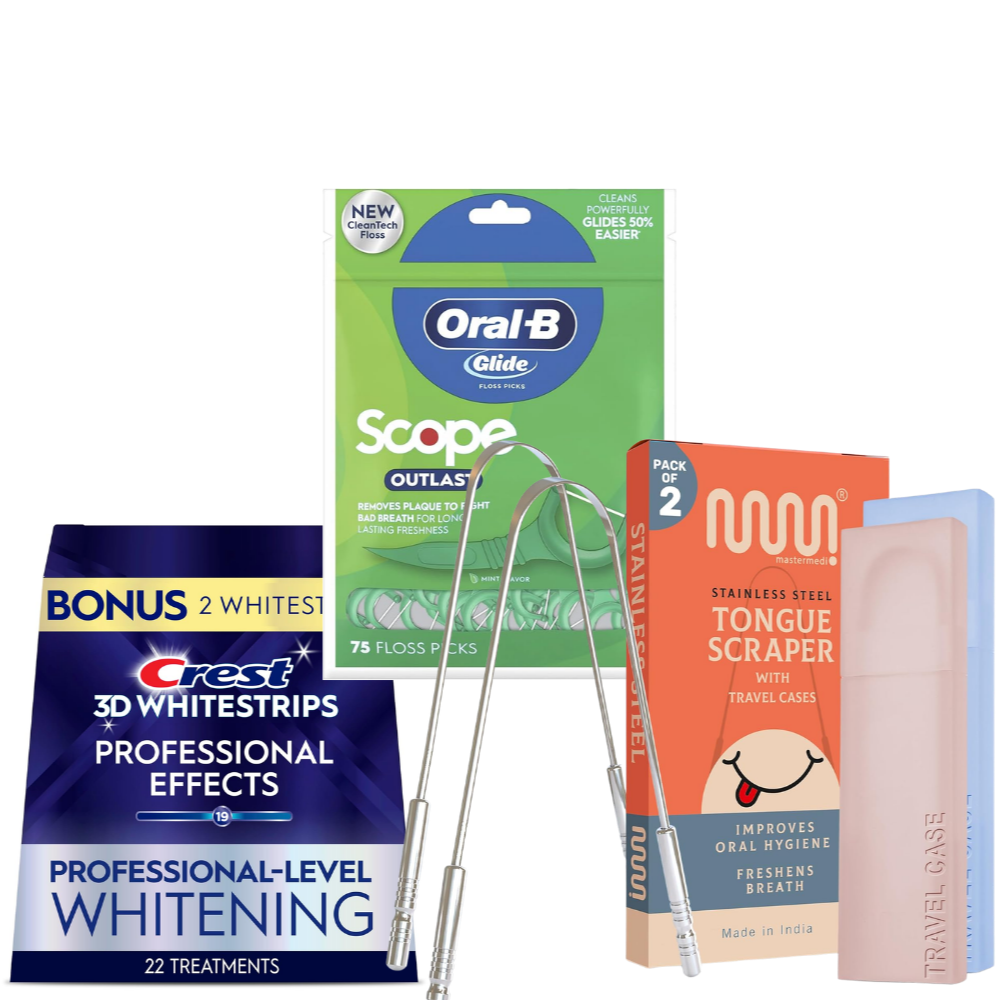 People can literally smell when someone doesn’t floss. I make flossing as convenient as possible with these little disposable picks. In addition to flossing, I have been tongue scrapping. It makes the world of different for your breath! Whitening my teeth is also part of my weekly routine. These three items (excluding a toothbrush and mouthwash) are what you need to stay on top of your oral health.